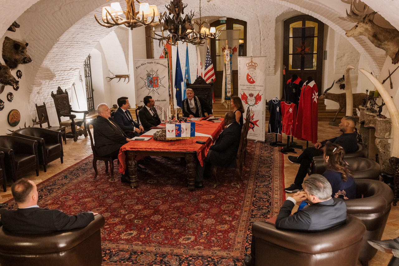 • Presentation of a historic survey and summary about the multifaceted activity of the Order, with special regard to its humanitarian work in various countries, emphasising the great donations (300.000) of gas masks by Sir Marjan Molek (Slovenia) and his son, Sir Klemen Molek to Ukraine, representing the value of 1,200,000 Euros and the shipping costs of 50,000 Euros (following another important mask donation to Angola)