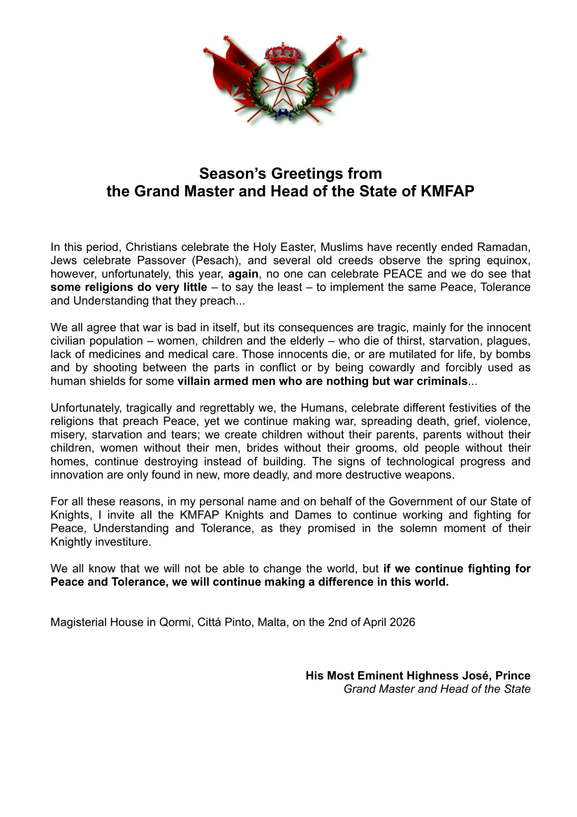 Season's Greetings from the Grand Master and Head of the State of KMFAP – 2026