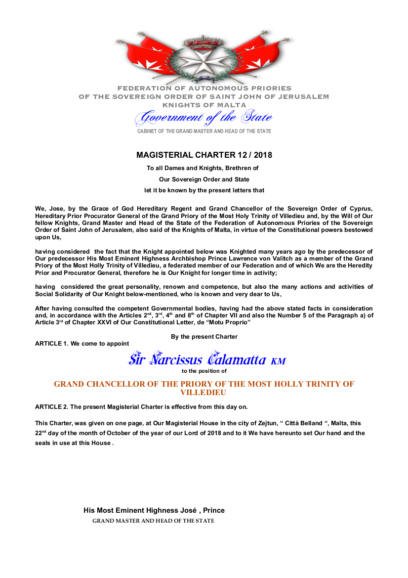 MAGISTERIAL CHARTER 12 / 2018