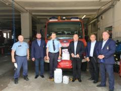 The following day an additional donation of 600 litres disinfectant and protective shields was delivered to the Fire Brigades in Dubnica upon Vah by Sir Ján Gramata, Sir Pavol Zachar, Sir Robert Christov, and Sir Yonghai Yan.